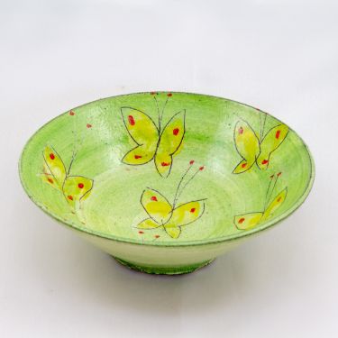 Coupelles « Acidulé » fabriquées à la main dans mon atelier au pied du Luberon. En grès noir chamotté, engobée avec de la terre blanche, vaisselle décorée et gravée pour révéler le décor. Elles existent en plusieurs coloris et motifs à l’atelier-boutique. Chaque pièce étant réalisée à la main, le modèle disponible peut légèrement varier par rapport aux photos.